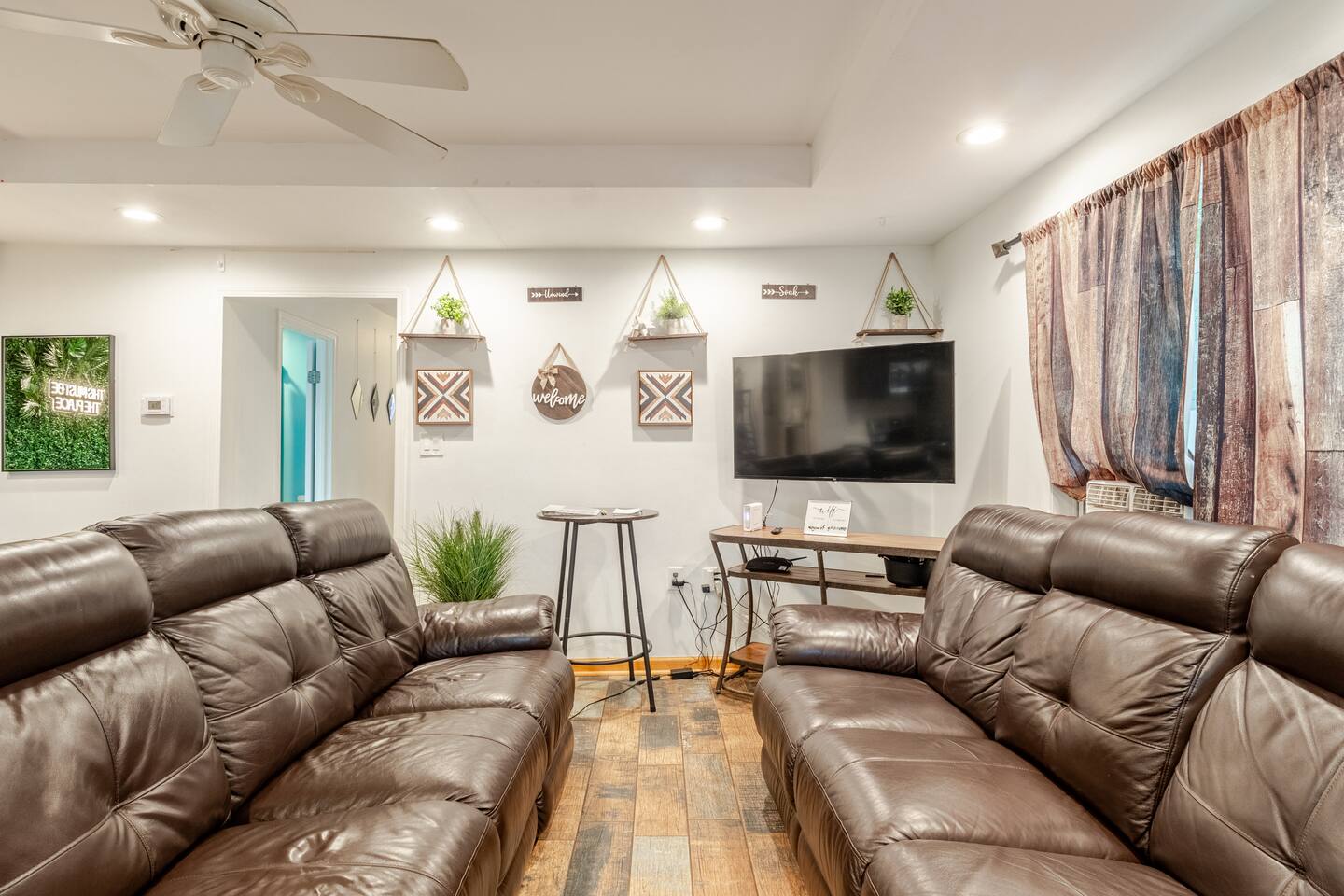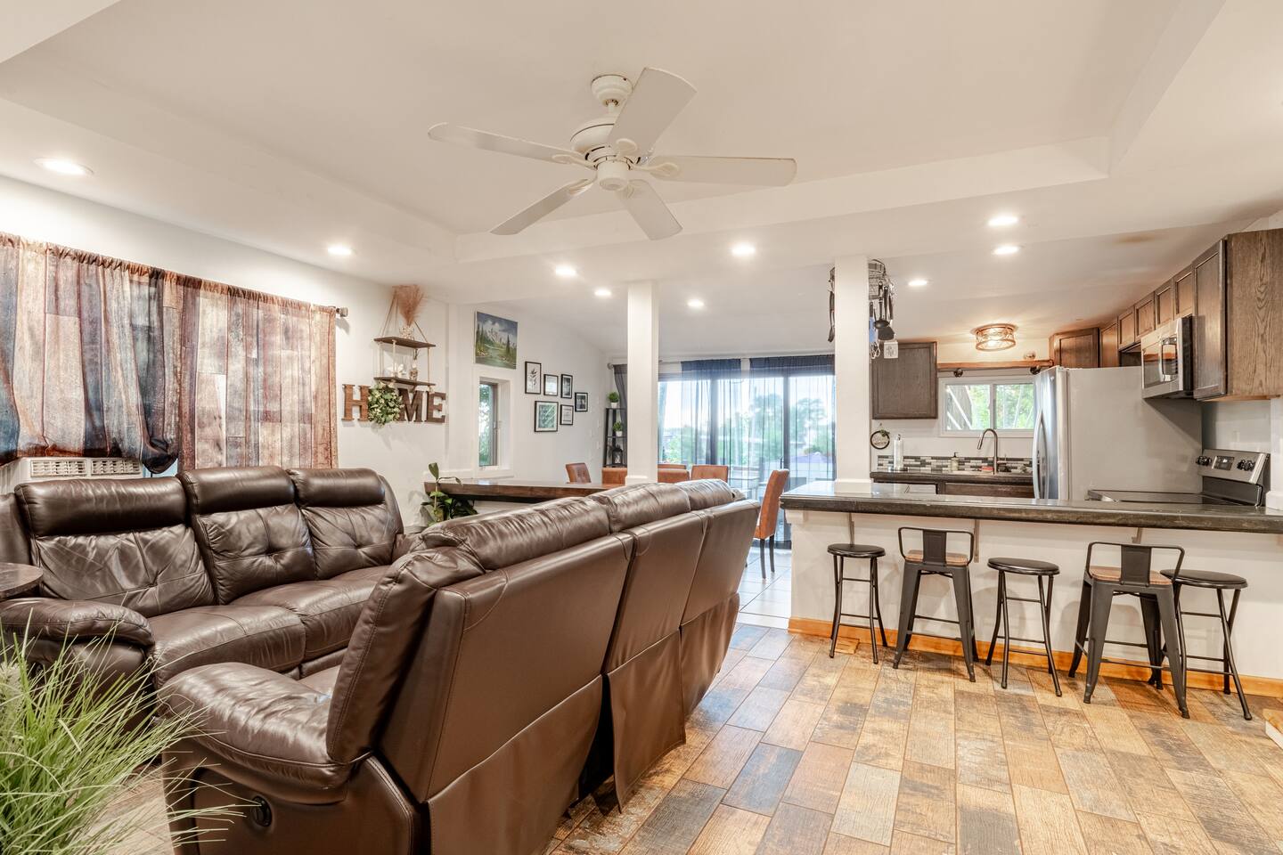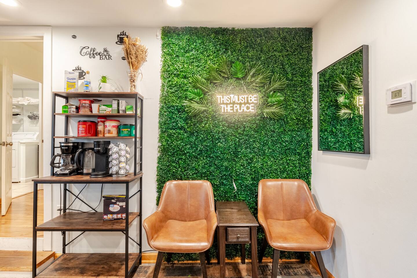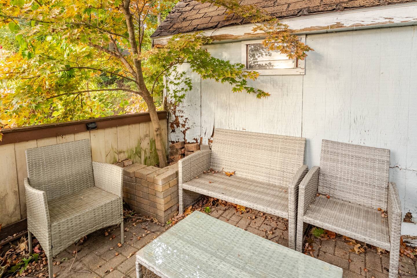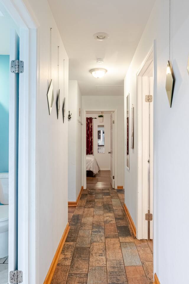 The home comfortably sleeps 10 but can fit 2 more with an extra air mattress. (Note: Fork N Pint right next door recently burned down and an ongoing investigation has prevented the removal of the burned down building )